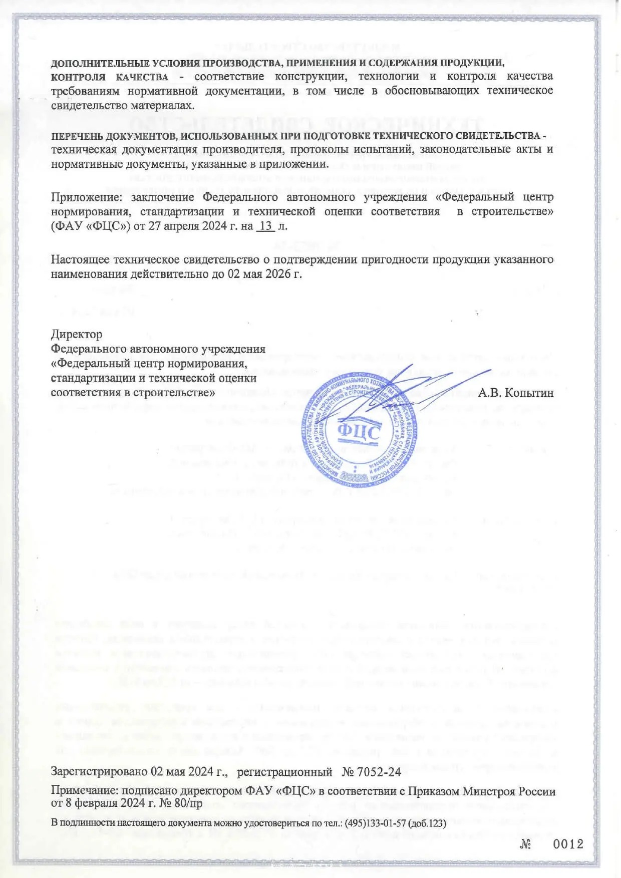 Техническое свидетельство Минстроя РФ на химические анкеры